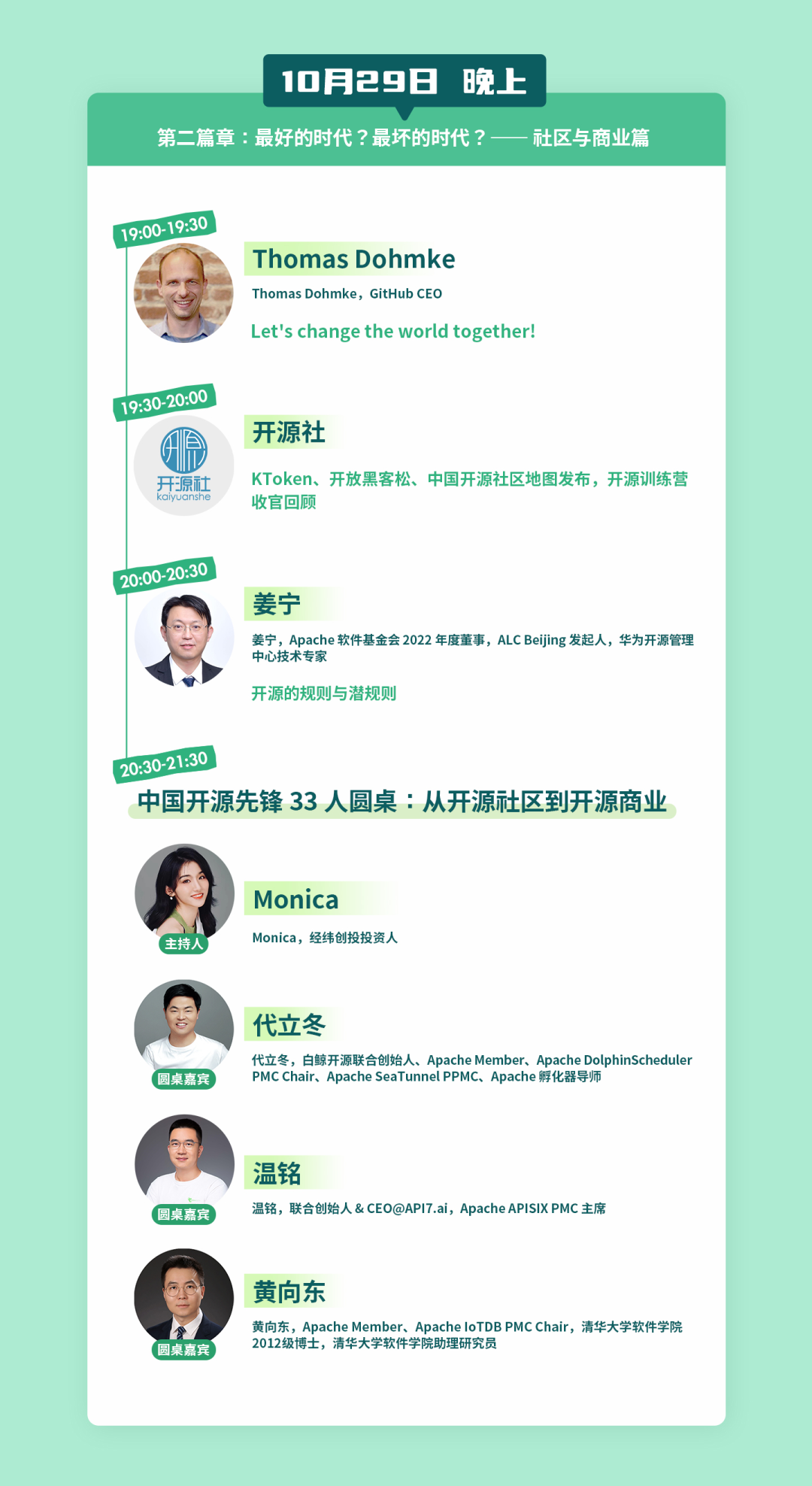 在 COSCon'22 中国开源年会的主论坛上,我们首次设置了夜场,GitHub CEO Thomas Dohmke 领衔,还有 Apache 软件基金会董事姜宁的演讲,以及开源社重磅发布等等,优质内容从早到晚精彩一整天!