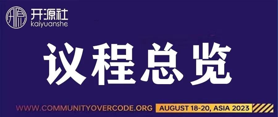 CommunityOverCode Asia 2023 议程全览,不容错过的阿帕奇技术盛宴 开源社KAIYUANSHE Community Over Code Asia - The ASF Conference 2023(原 ApacheCon Asia)已经进入倒计时!作为久负盛名的开源盛宴和开源界最具期待的大会之一,CommunityOverCode Asia 2023 将首次从线上走到北京线下,来自各地的参与者都可以近距离享受这场 Apache 技术盛宴。届时,我们将展示 Apache 项目的最新突破和 Apache 孵化器中即将到来的创新,以及开源开发和以 “The Apache Way” 领导社区驱动的项目,共同探讨 Apache 的运作生态、Apache 软件的商业模式、开源的法律问题以及其他许多主题的内容。会议将持续 3 天,设有 17 个论坛方向,我们共收集到 150 余个议题投稿,其中中文议题约 110 个,英文议题近 40 个。在过去的若干天,我们按照不同论坛方向为大家带来了本届 CommunityOverCode Asia 的议程介绍,而在本篇文章中,你将一览全部精彩议程!▼ 上下滑动查看专题议程 ▼作为 Apache 软件基金会(ASF)的官方全球系列大会,每年的 CommunityOverCode Asia 都吸引着来自全球各个层次的参与者、社区共同探索 "明天的技术"。8月18日至8月20日,即将强势来袭的 CommunityOverCode Asia 2023 上,大家可以近距离感受来自 Apache 项目的最新发展和新兴创新。除了丰富的议题、开源文化的传播外,大会的精美周边也一直为人称道,我们为每一位大会出品人、讲师、志愿者和参会人员都准备了社区纪念周边,您只需购票参会,并在签到处领取展位打卡地图,完成指定任务就可以免费获得!今年的大会为期 3 天,从 8 月 18 日至 8 月 20 日,各票种价格从 199 元至 6999 元不等,您可 点击此处 查看大会各票种介绍,或点击【阅读原文】至大会官网选购适合您的大会门票。转载丨ALC Beijing编辑丨罗蕊艳相关阅读 | Related Reading许可是开源的基石,协作才是未来!KCC@南京第二次活动 仲夏开源之夜演讲|Jianmin:Personal Data Ownership仲夏开源之夜演讲|Chen Haidong:Generative AI meet Open Source