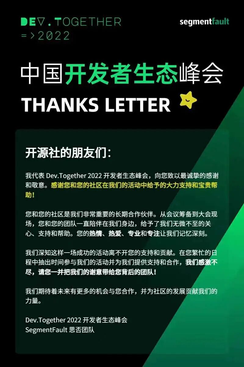 在 2023 年的春天,开源社走进了 Dev.Together 2022 的会场,一时间有种时空错觉。2022 年本该举办的开源聚会因为不可抗力的因素被延期,感谢思否一直坚持的理念:Dev.Together Summit 只做线下,将社区的团聚大家的期待延续到了 2023 年。